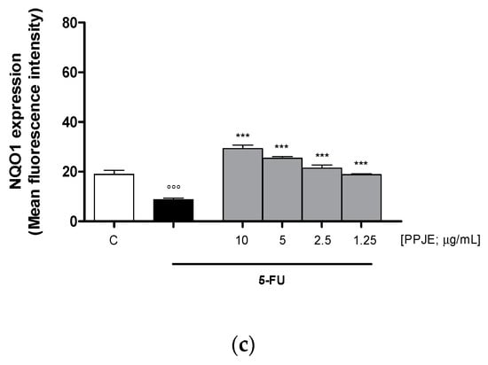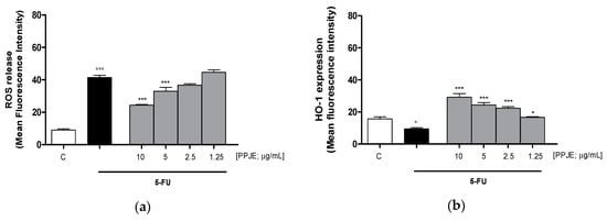 3.3.1. Pomegranate Reduced ROS Release and Increased HO-1 and NQO1 Expression in 5-FU-treated IEC-6