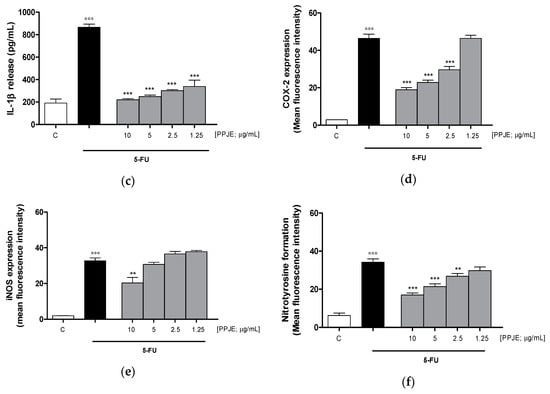 3.3.2. Pomegranate Reduced Cytokines Levels, COX-2 and iNOS Expression and Nitrotyrosine Formation in 5-FU-Treated IEC-6
