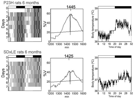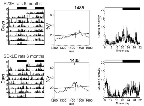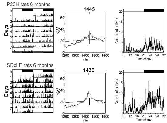 - Orhan, E.; Dalkara, D.; Neuille, M.; Lechauve, C.; Michiels, C.; Picaud, S.; Leveillard, T.; Sahel, J.A.; Naash, M.I.; Lavail, M.M.; et al. Genotypic and phenotypic characterization of P23H line 1 rat model. PLoS ONE 2015, 10, e0127319. [Google Scholar] [CrossRef]