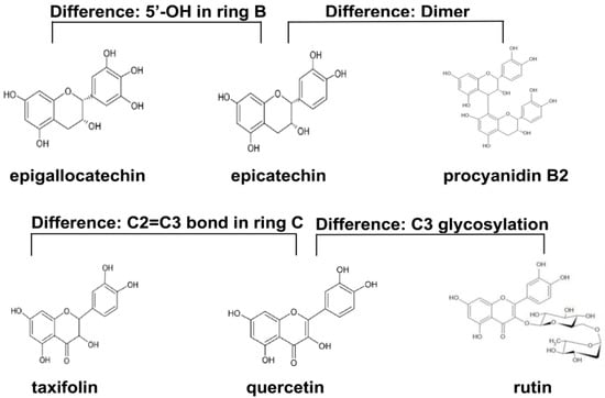 | Epicatechin | Epicatechin can exert anti-inflammatory and antioxidant effects, and it can pass through the blood brain barrier to provide neuroprotection [19]. |