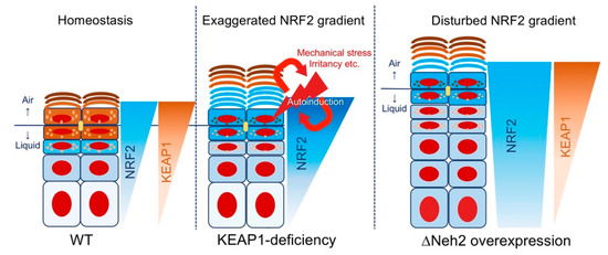 Having summarized mouse models in which the KEAP1/NRF2 signaling pathway is activated either by deleting the sensor [11] or by boosting the effector [53], we conclude that the differences between Keap1 deficiency [11] and Neh2 deficiency [53] would be attributable to (i) the exceptional efficiency of the thiol-rich sensor protein KEAP1, (ii) the ambient air-modification of keratinization, and (iii) the structural differences among thiol-rich CE precursors.