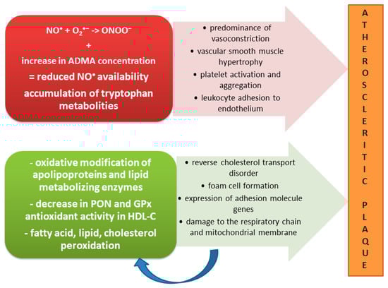 Due to the prevalence of CKD in the population worldwide, in recent years, significant research efforts have been directed to identifying the mechanism of accelerated atherosclerosis and other related disturbances in this group of patients. Traditionally recognized risk factors, such as (1) hypertension, (2) hypercholesterolemia, (3) obesity, (4) and hyperhomocysteinemia, alone do not explain the high frequency of CVD in CKD patients. Therefore, it is emphasized that non-traditional risk factors may be essential here, among which, apart from endothelial dysfunction, vascular calcification, volume overload, oxidative stress, and inflammation are indicated [3]. These last two factors have recently gained considerable support as factors relevant in CVD in the setting of CKD.
