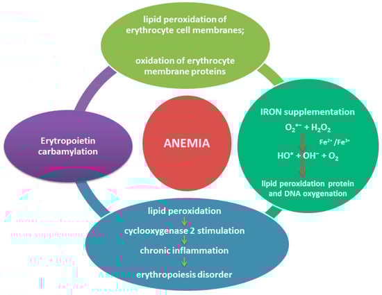 - Bissinger, R.; Bhuyan, A.A.M.; Qadri, S.M.; Lang, F. Oxidative stress, eryptosis and anemia: A pivotal mechanistic nexus in systemic diseases. FEBS J. 2019, 286, 826–854. [Google Scholar] [CrossRef] [PubMed]