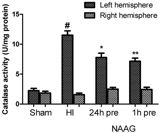 We observed no changes in the catalase activity in the contralateral hemisphere after HI, or after the application of NAAG.
