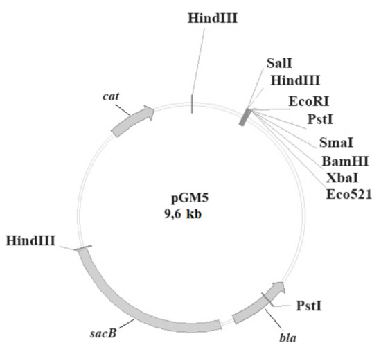 Design of suicide plasmid for recD deletion. pGMΔrecD plasmid was create on base of pGM5 vector [16] (Figure 1).