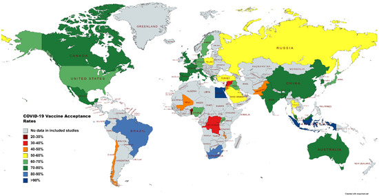 Figure 2. Map illustrating vaccine-acceptance rates worldwide.