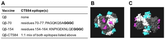 3.3. Immunization with Qβ-CT584 Induces High Titer, Peptide-Specific Serum IgG