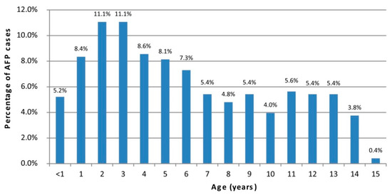 Percentage of AFP cases by age.