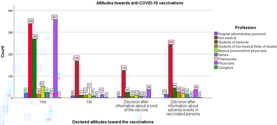 Declared attitude towards the coronavirus disease 2019 (COVID-19) vaccination in the particular profession groups.