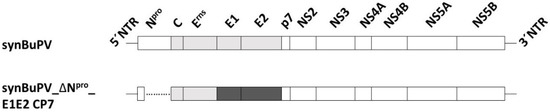 3.1. Construction and Characterization of BuPV_ΔNpro_E1E2 CP7
