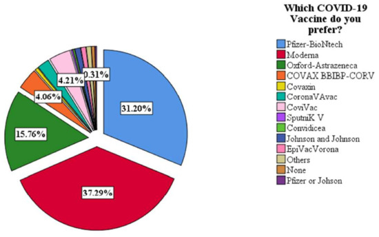 While the US FDA halted the use of Johnson & Johnson COVID-19 vaccinations following numerous suspected and documented deaths and serious cases of a form of blood clotting following immunization, several European countries suspended the AstraZeneca COVID-19 vaccine in March and April 2021 [38,39]. These incidents would unquestionably raise the perceived risks associated with potential vaccination [40]. This may explain the preference for the Moderna and Pfizer COVID-19 vaccines (as shown in Figure 2) relative to the AstraZeneca COVID-19 vaccine which was better made available by the COVAX, Gavi-led vaccination support in Nigeria [41].