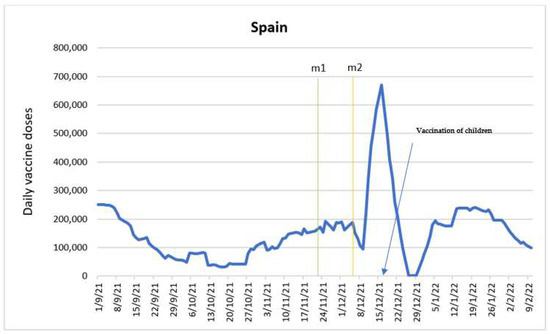 - El portal de las vacunas de la Asociación Española de Pediatría. Evolución de la Vacunación Frente a la COVID de Niños y Adolescentes en España. Available online: https://vacunasaep.org/profesionales/noticias/evolucion-de-la-vacunacion-frente-la-covid-de-ninos-y-adolescentes-en-espana-99#:~:text=La%20vacunaci%C3%B3n%20de%20los%20adolescentes,23%20de%20julio%20de%202021 (accessed on 15 August 2022).