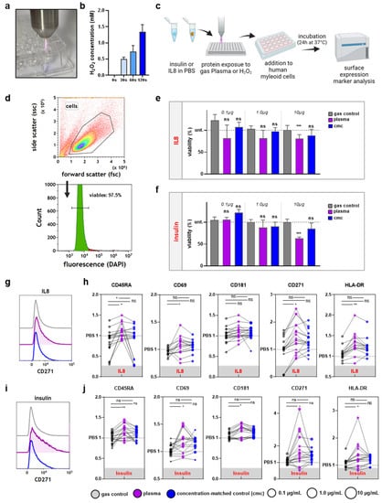 - Clemen, R.; Freund, E.; Mrochen, D.; Miebach, L.; Schmidt, A.; Rauch, B.H.; Lackmann, J.W.; Martens, U.; Wende, K.; Lalk, M.; et al. Gas Plasma Technology Augments Ovalbumin Immunogenicity and OT-II T Cell Activation Conferring Tumor Protection in Mice. Adv. Sci. 2021, 8, 2003395. [Google Scholar] [CrossRef] [PubMed]