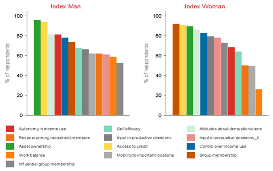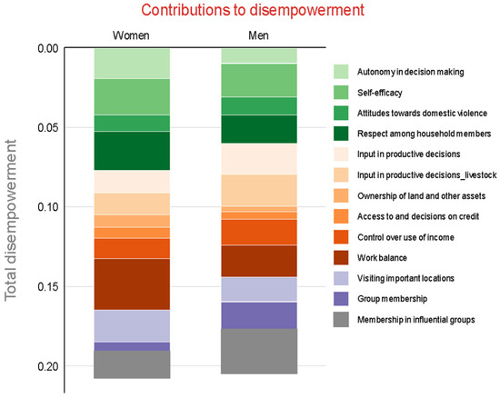 Contribution of each indicator to disempowerment by gender.
