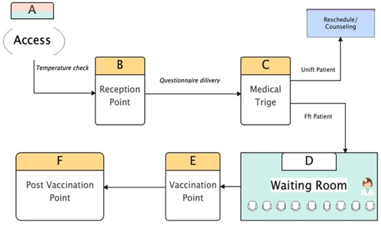 In addition, we proposed establishing step D (Figure 2), wherein patients might interact with a physician. Although all documents could be delivered at the registration desk, the receptionist must instruct patients to complete only the triage questionnaires. Every patient should be able to speak with a physician and receive the necessary vaccination information. Research on optimizing patient flow should be conducted to assess the best model for vaccination centers while complying with the relevant laws.