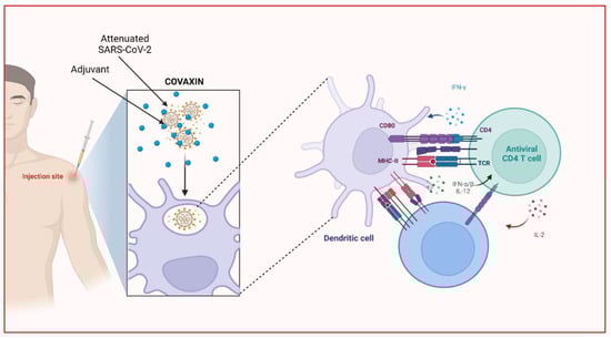 Working principle of COVAXIN against the SARS CoV-2 and its immune response. (Created with Biorender.com).