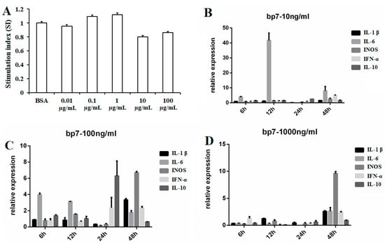 3.2. The Expressions of the Cytokine in HD11 Cells with BP7 Stimulation