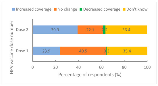 Survey respondent perceptions of the influence of the change to a 2-dose schedule on HPV vaccination coverage for adolescents aged <15 years in their area (n = 1128).