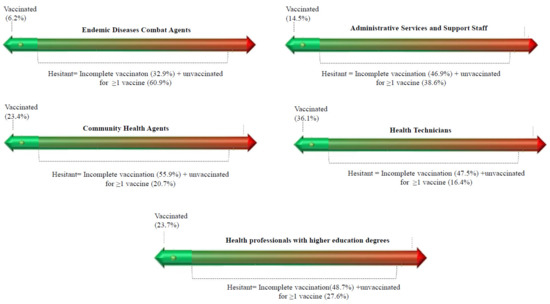 The literature shows that, similar to the general population, health workers can be hesitant about receiving the recommended vaccines [18,19,20]. This is a worrying situation, as health workers, in addition to the increased risk of contracting vaccine-preventable diseases, can also transmit them to the individuals they assist or live with.