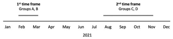 Study flow timeline diagram is presented in Figure 1. In the first time frame, Group A “Recovered” were women previously infected and not vaccinated. Group B “Second Vaccination” were women vaccinated by the first and second doses only. In the second time frame, Group C “Third Vaccination” were women vaccinated by the third dose, and Group D “No Third Vaccination” were women eligible for the third dose (received second dose at least 5 months earlier) but did not receive it.