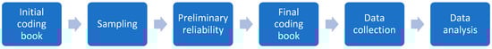 The overall research design comprised the steps delineated in Figure 1. Namely, after the initial coding book development and sampling, preliminary reliabilities were calculated, which led to the development of the final version of the coding book. After that, data collection and data analysis were conducted. All the steps are described below in more detail.
