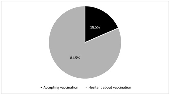 In the study, 81.5% were hesitant to vaccinate their children for COVID-19, and only 18.5% had already done so (Figure 1).