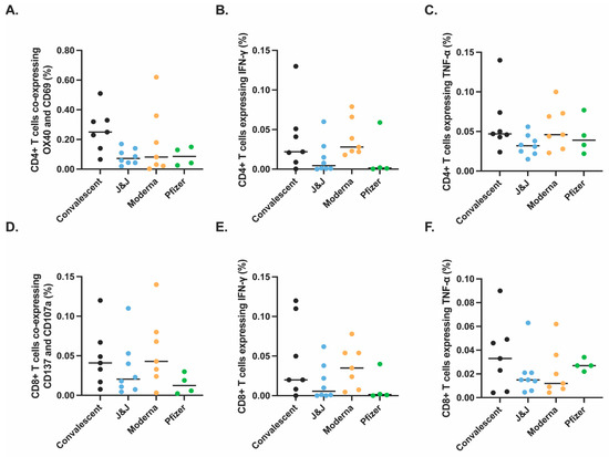 The following supporting information can be downloaded at: https://www.mdpi.com/article/10.3390/vaccines10122152/s1, Figure S1: CD4+ and CD8+ T cell gating strategy; Table S1: Clinical information of vaccinated participants; Table S2: Clinical information of the convalescent participants; Table S3: Antibodies used for flow cytometry experiments.