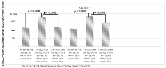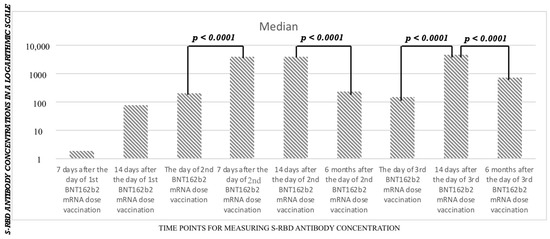 | 14 days after the 3rd vaccine dose, median [IQR] | 4587.50 [3011.20–7478.00] |