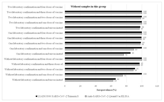The following supporting information can be downloaded at: https://www.mdpi.com/article/10.3390/vaccines10122168/s1, Table S1: Seropositivity of participants according to the number of previous SARS-CoV-2 infections and/or number of COVID-19 vaccines received, as measured by two serological tests.