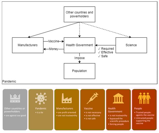 The “suspicion towards manufacturers” theme included the expressions of suspicions towards the companies or countries that produced the vaccine. The theme of “suspicion towards health authorities” included dissatisfaction about countries’ methods of combating the pandemic and claims of secret relationships in the health sector. Similar themes were found under the theme of “mistrust in health institutions” in a rapid literature review that included articles on vaccine confidence, trust, and hesitancy published between 2004 and 2014 in Europe [], and the theme of “authority figures” was identified in a content analysis of tweets conducted in Canada [].