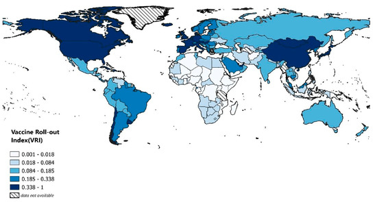 3.2. Vaccine Roll-Out Index (VRI) among Countries