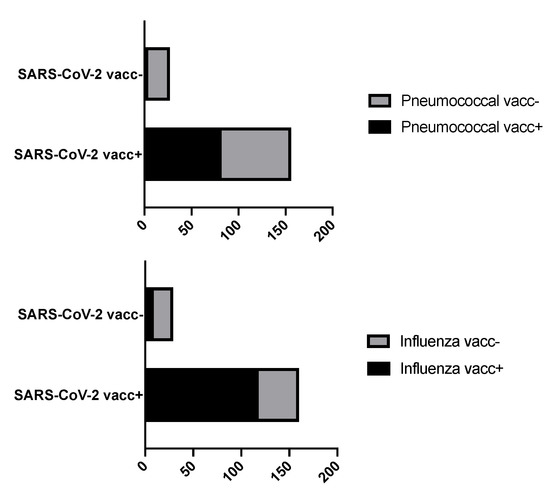 3.1. Vaccination Coverage Is Higher in Patients with Either Current Influenza or Pneumococcus Vaccination