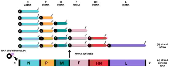 - Acheson, N.H.; Kolakofsky, D.; Richardson, C. Paramyxoviruses and Rhabdoviruses. In Fundamentals of Molecular Virology; Acheson, N.H., Ed.; Wiley: Hoboken, NJ, USA, 2011; pp. 175–187. [Google Scholar]
