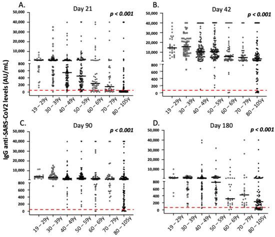 - Zeng, F.; Wu, M.; Wang, J.; Li, J.; Hu, G.; Wang, L. Over 1-Year Duration and Age Difference of SARS-CoV-2 Antibodies in Convalescent COVID-19 Patients. J. Med. Virol. 2021, 93, 6506–6511. [Google Scholar] [CrossRef]