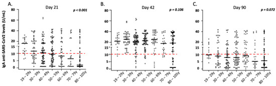 3.5. Correlation of IgA Antibody Responses with Demographic and Clinical Parameters of the Vaccinated Individuals