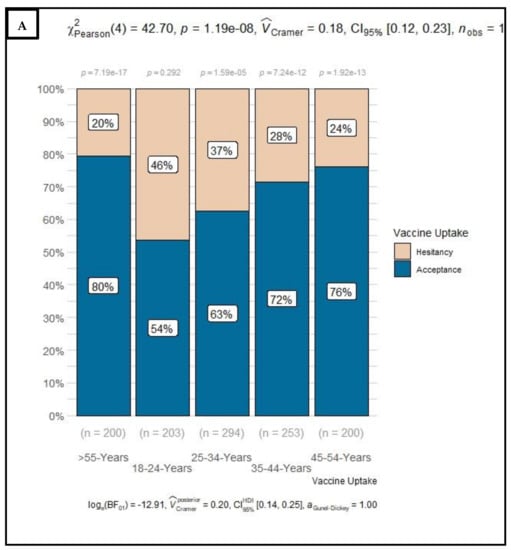 Regardless of education level, the likelihood of vaccine hesitancy was predicted by young age [31,32], racial disparity [33,34], and low monthly income [35,36]. Consistent with other COVID-19 studies [37,38], we also found government distrust was associated with vaccine hesitancy among our respondents. Since people with low socioeconomic status have been unequally impacted, this might explain in part the association we found between vaccine hesitancy, distrust, low monthly income, and ethnic disparity [39,40,41]. Vaccination uptake in Africa is associated with the level of trust communities have for government. For example, one study of child vaccination rates in Africa found a significantly reduced rate of vaccination in regions where the local population was distrustful of local authorities, with a one standard deviation increase in the institutional mistrust index being associated with a 10% increase in the likelihood that a child had missed any of the eight basic vaccines [42].
