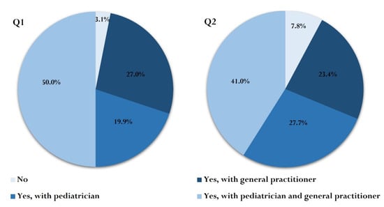 Communicating with your GP or pediatrician about vaccination. Q1. Have you ever discussed with your family doctor/pediatrician about vaccines in the free regimen for your child/children? Q2. Have you ever discussed with your family doctor/pediatrician about optional vaccines that can be given to your child/children?
