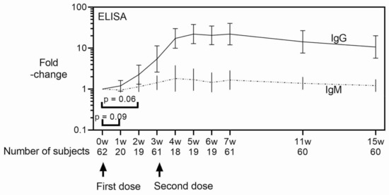 - Fujigaki, H.; Inaba, M.; Osawa, M.; Moriyama, S.; Takahashi, Y.; Suzuki, T.; Yamase, K.; Yoshida, Y.; Yagura, Y.; Oyamada, T.; et al. Comparative Analysis of Antigen-Specific Anti-SARS-CoV-2 Antibody Isotypes in COVID-19 Patients. J. Immunol. 2021, 206, 2393–2401. [Google Scholar] [CrossRef]