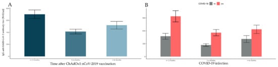 3.7. Changes in Antibody Levels over 8 Months after Vaccination with ChAdOx1 nCoV-2019