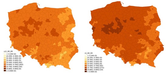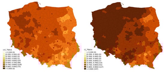 Information on the percentage of vaccinated population in particular regions was taken from the Polish Ministry of Health []. The data were collected as of 30 July 2021 and 31 January 2022. Subdivision of data for age groups was determined by data availability, which was provided for the following age groups: 12–19, 20–39, 40–59, 60–69 and 70–79. For the purpose of this study, group 12–19 has been omitted; first, this group is highly heterogeneous, as it includes both minors under parental care and young adults making their own decisions, thus it is likely to be governed by somewhat diverging factors; and second, vaccination of the 12–15 age group started on 7 June 2021, so this group would have had less than a month to receive the first dose of vaccine before being prematurely classified as late adopters. People who received at least a single dose are considered vaccinated. This methodological decision was partially caused by data availability, but also simplified our initial assumptions.