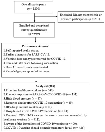 This study detailed the recruitment of participants, past exposure to SARS-CoV-2, exclusion criteria, hospitalisation following vaccination, the observed adverse events, and their treatment by Africans, including recommendation for COVID-19 vaccination (Figure 1).