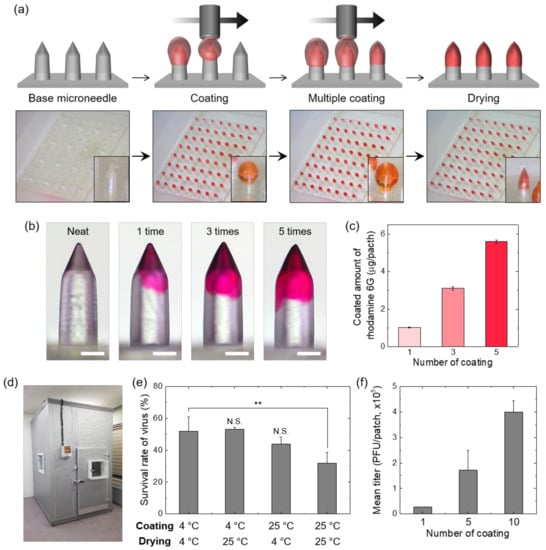 - Ingrole, R.S.J.; Gill, H.S. Microneedle Coating Methods: A Review with a Perspective. J. Pharmacol. Exp. Ther. 2019, 370, 555–569. [Google Scholar] [CrossRef]
