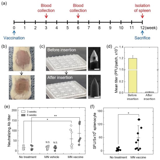 - Choi, I.J.; Kang, A.; Ahn, M.H.; Jun, H.; Baek, S.K.; Park, J.H.; Na, W.; Choi, S.O. Insertion-responsive microneedles for rapid intradermal delivery of canine influenza vaccine. J. Control. Release 2018, 286, 460–466. [Google Scholar] [CrossRef]