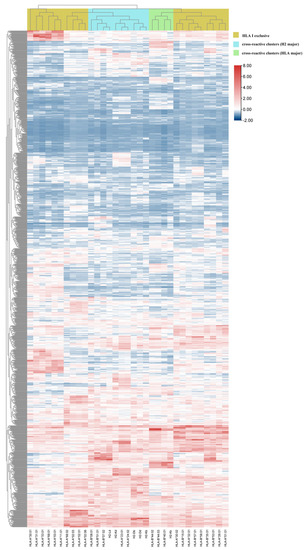 3.4. Hierarchical Clustering Showed Interaction between pan-MHC-I Molecules and HTNV 9-Mer Peptides
