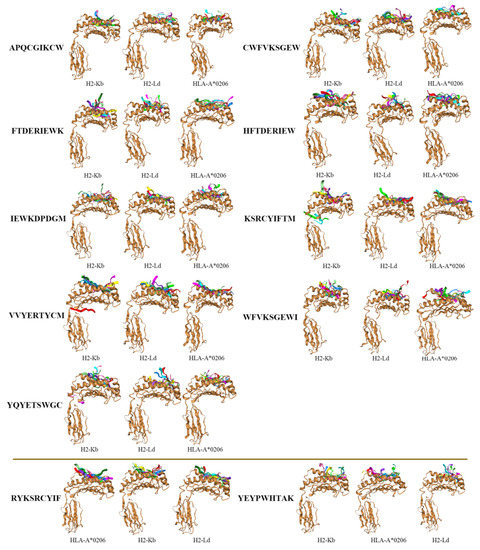 3.5. Docking of pMHC Molecules with the Dominant Epitopes