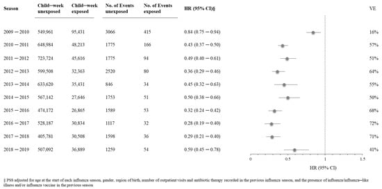 Chicago/Turabian StyleCantarutti, Anna, Elisa Barbieri, Fabio Didonè, Antonio Scamarcia, Carlo Giaquinto, and Giovanni Corrao. 2022. "Influenza Vaccination Effectiveness in Paediatric ‘Healthy’ Patients: A Population-Based Study in Italy" Vaccines 10, no. 4: 582. https://doi.org/10.3390/vaccines10040582