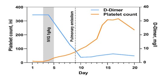 - Uzun, G.; Althaus, K.; Singh, A.; Möller, P.; Ziemann, U.; Mengel, A.; Rosenberger, P.; Guthoff, M.; Petzold, G.C.; Müller, J.; et al. The use of IV immunoglobulin in the treatment of vac-cine-induced immune thrombotic thrombocytopenia. Blood J. Am. Soc. Hematol. 2021, 138, 992–996. [Google Scholar]