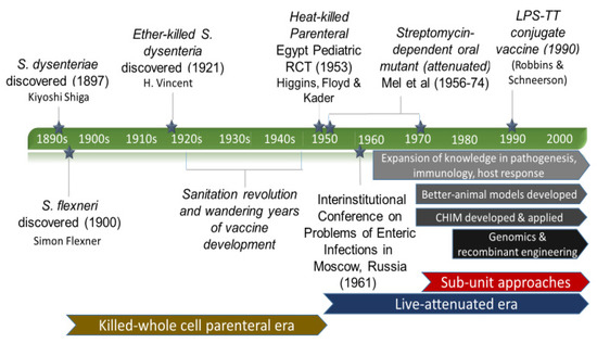 APA StyleHerrera, C. M., Schmitt, J. S., Chowdhry, E. I., & Riddle, M. S. (2022). From Kiyoshi Shiga to Present-Day Shigella Vaccines: A Historical Narrative Review. Vaccines, 10(5), 645. https://doi.org/10.3390/vaccines10050645