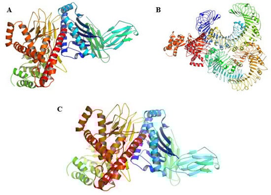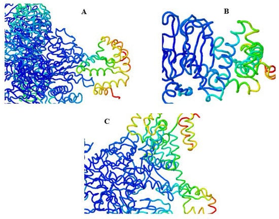 Three-dimensional structures of both selected proteins were modeled using the trRosetta server [] (https://yanglab.nankai.edu.cn/trRosetta/ (accessed on 23 July 2021). These structures were further utilized to identify the discontinuous B-cell epitopes of the protein discussed in the next section. The models retrieved from trRosetta were refined on GalaxyRefine [] (http://galaxy.seoklab.org/cgi-bin/submit.cgi?type=REFINE (accessed on 24 July 2021), which were further run on three tools of the UCLA-DOE lab server (https://servicesn.mbi.ucla.edu/PROCHECK/ (accessed on 24 July 2021), PROCHECK [] ERRAT [], and verify3D [] for protein analysis and validation.