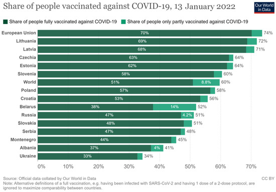 Share of people vaccinated against COVID-19 in Eastern European countries as of 13 January 2022 (after “Our World in Data,” reproduced with permission) [13].